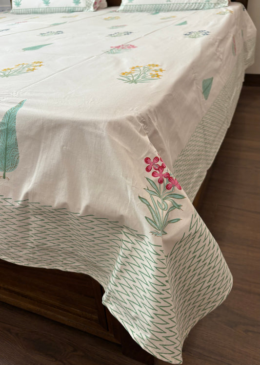 Gulshan 100% Cotton Hand Block Printed 300 TC Bedsheet Set