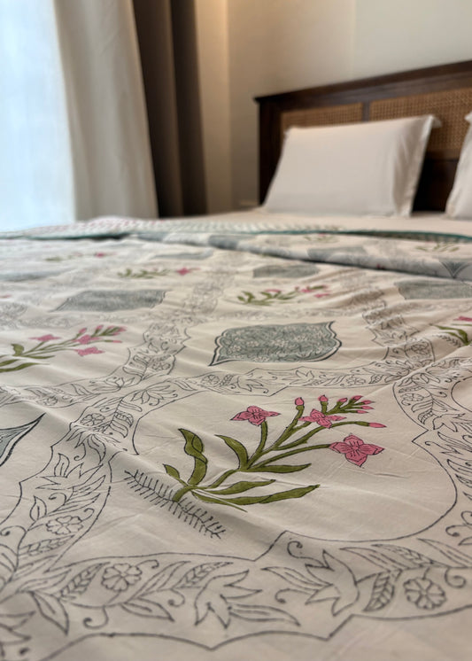 Ruhani 100% Mulmul Cotton Reversible AC Dohar – Hand Block Printed