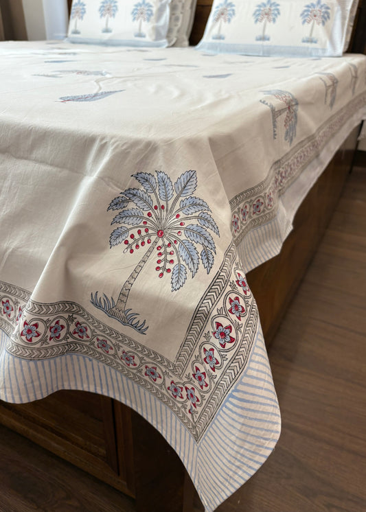 Palm Bliss 100% Cotton Hand Block Printed 300 TC Bedsheet Set