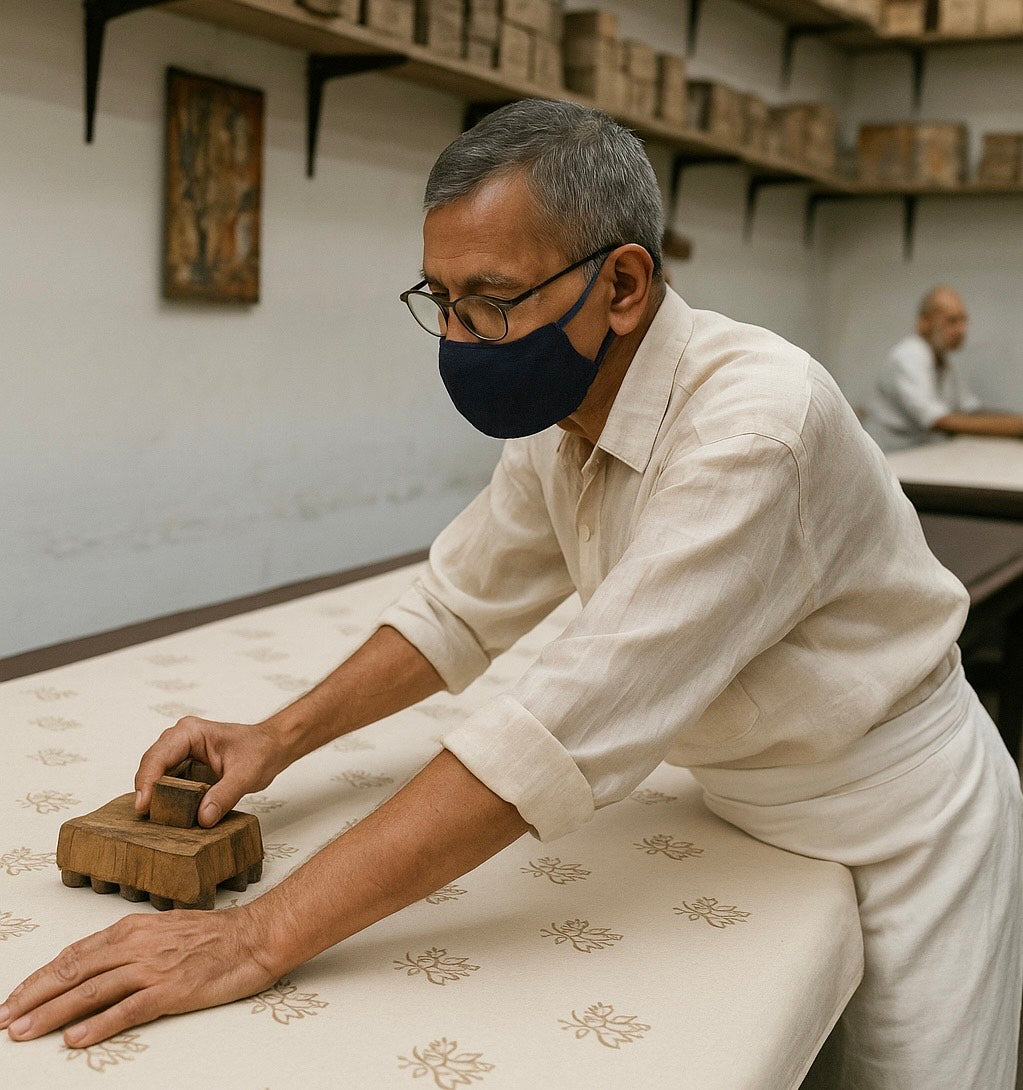 Every pattern is carefully stamped by hand using intricately carved wooden blocks, a technique passed down like heirlooms within artisan communities. No two sheets are ever quite the same and that’s the beauty of it. It’s luxury not made by machines, but by human hands, with soul.