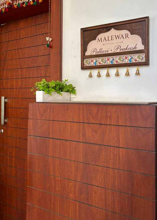 Each nameplate is lovingly crafted by skilled Indian artisans, many of whom belong to families that have perfected the art of woodworking over decades. Using high-quality, durable wood, every piece is hand-polished for a smooth finish and then laminated to protect against peeling, rust, and moisture ensuring it looks just as beautiful for years to come.