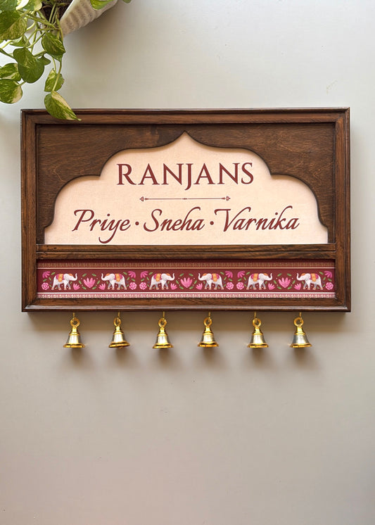 Shubh Aalay - Custom Printed Name Plate with Antique Wooden Frame