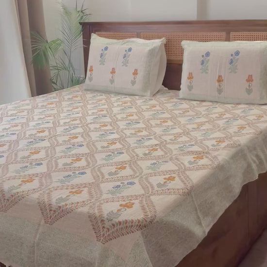 Bageecha Hand Block Printed Soft Jute Bedsheet Set