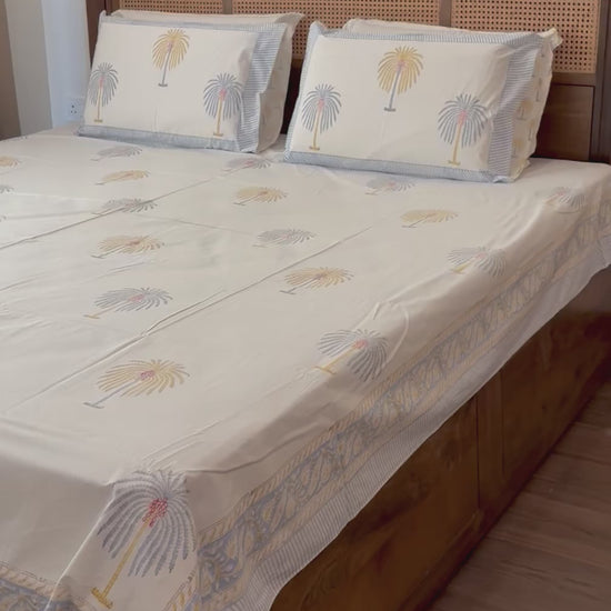 Coastal Calm 100% Cotton Hand Block Printed 300 TC Bedsheet Set