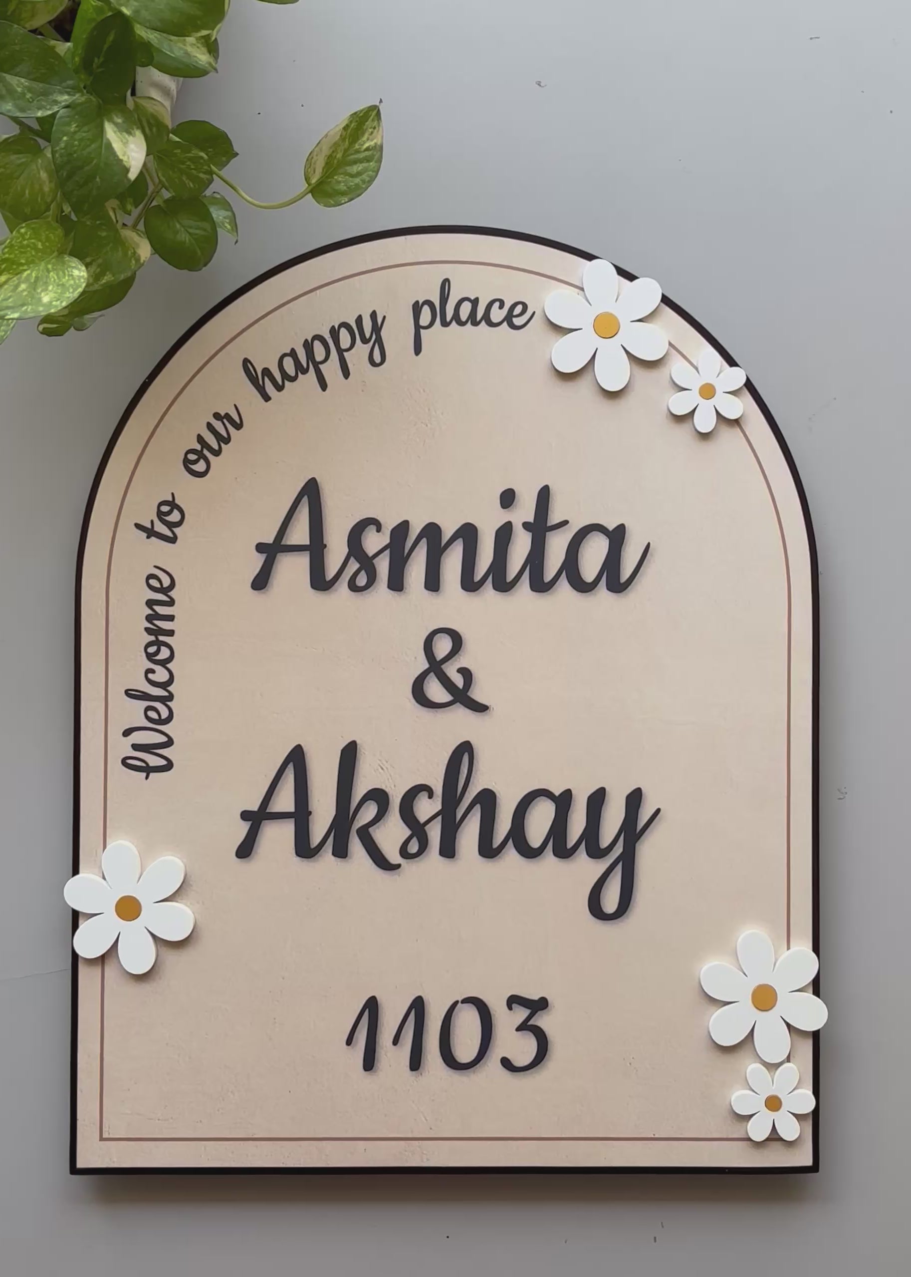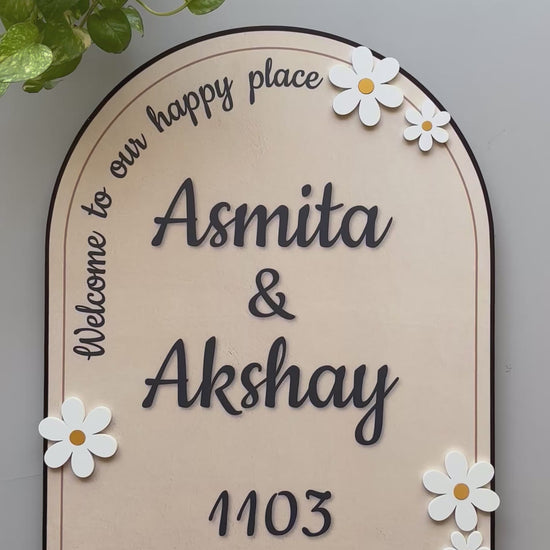 The Daisy Archway Nameplate is a perfect blend of elegance and simplicity, designed to add a soft and charming touch to your entrance. Featuring a graceful arch-shaped design with delicate acrylic daisies, this nameplate brings a refreshing, nature-inspired look to any space. The matte-finished wooden fiberboard ensures a smooth and refined surface, while the daisy accents add a hint of playfulness and sophistication. Whether for a modern or traditional home, the Daisy Archway Nameplate is a timeless choice that radiates warmth and beauty.