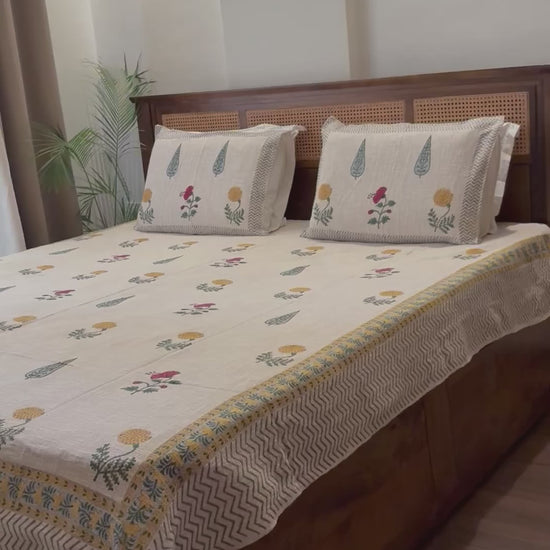 Marigold Hand Block Printed Soft Jute Bedsheet Set