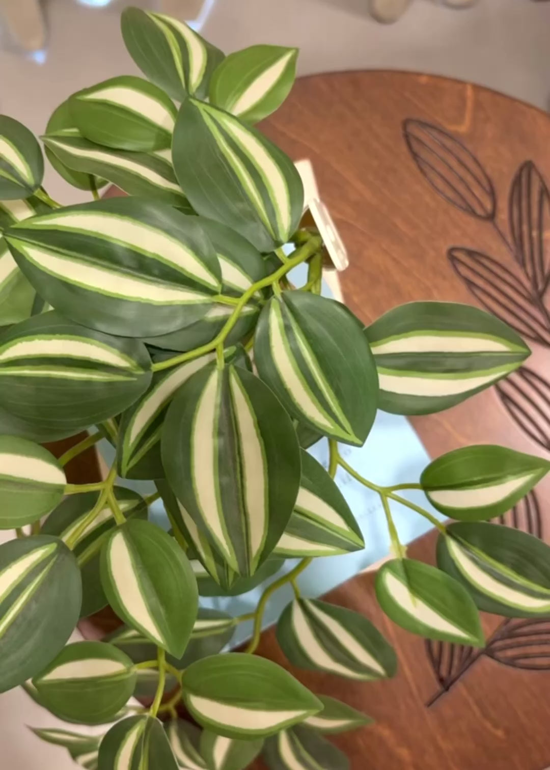 The tabletop features delicate leaf-inspired carvings, crafted by hand with fine attention to detail. Its gently tapered three-leg design adds character and balance, making it a beautiful accent next to a sofa, in a reading corner, or by the bedside.
