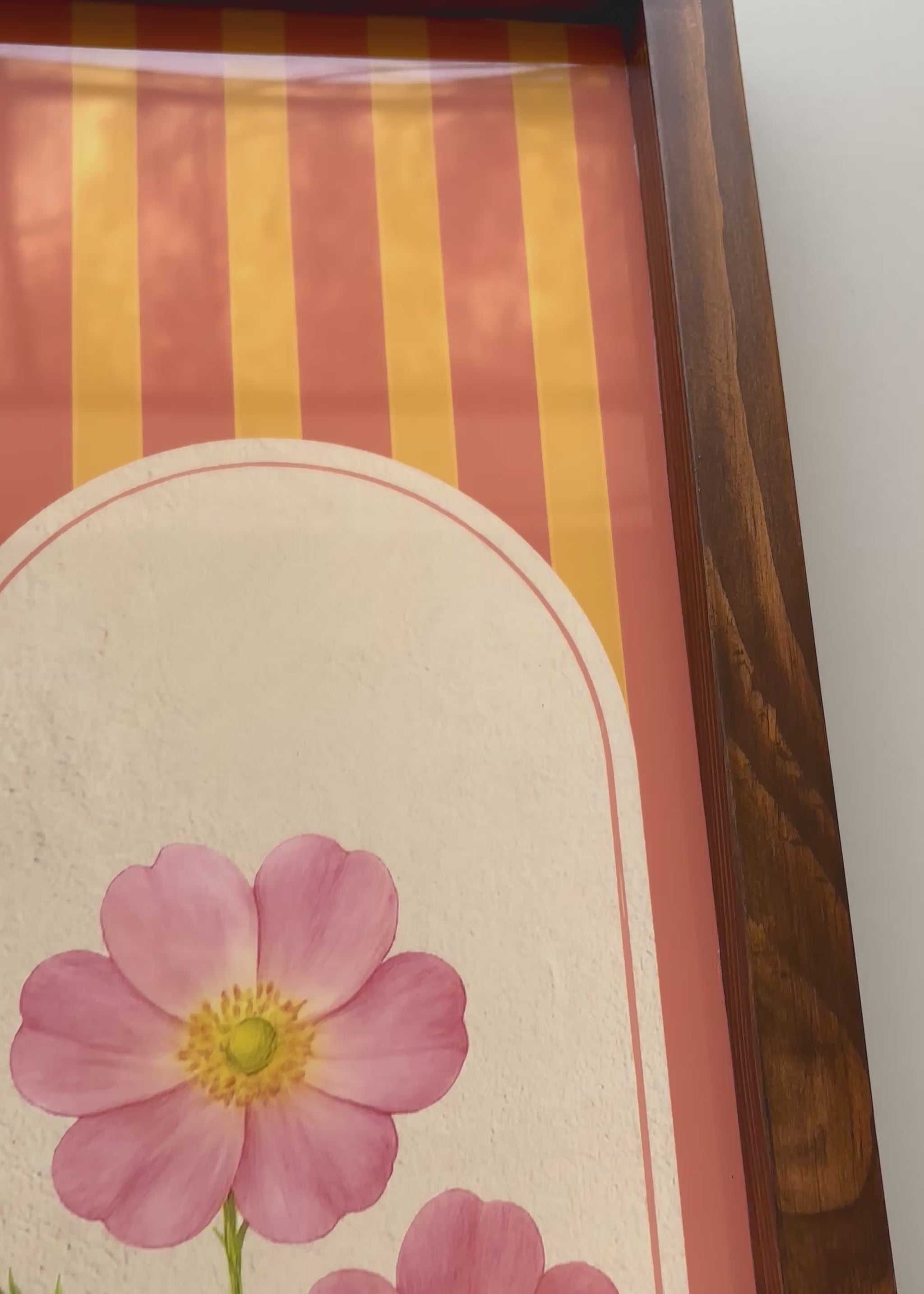 As the name “Roshan Rang” suggests, these frames capture the essence of light and color. Each piece features delicate floral artwork set against a cheerful, striped background, blending the softness of nature with a bold, contemporary touch. The vertical design makes them an excellent choice for narrow walls, entryways, corridors, or beside doorways, where a touch of artful charm can truly transform the space.
