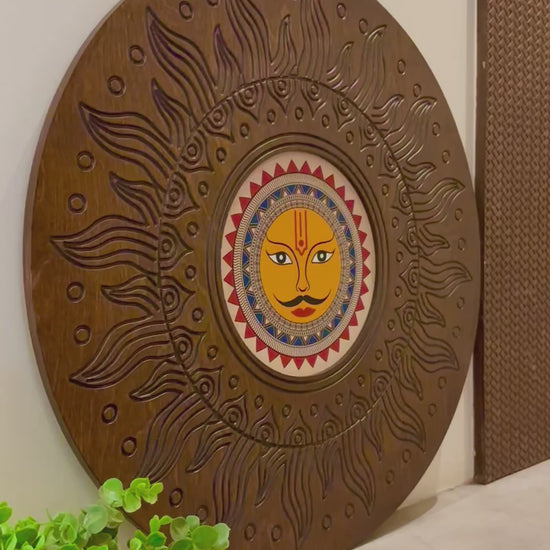 The Surya Dev Wall Art is a stunning representation of the Sun God (Surya Bhagwan), revered in Hindu tradition as the source of life, energy, and prosperity. This intricately designed spiritual wall decor is expertly carved on premium birch sheets, with the central portion crafted from wooden fiberboard and finished with matte lamination, ensuring both durability and elegance. The detailed engravings capture the radiant aura of Surya Dev, making it a powerful addition to any home, temple, or meditation space.