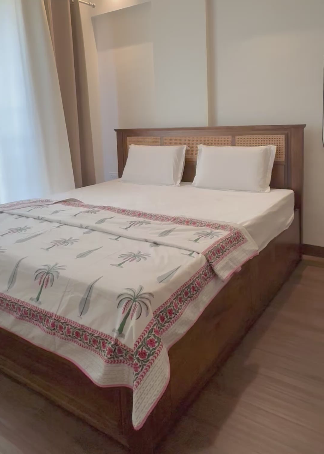 Every pattern is carefully stamped by hand using intricately carved wooden blocks, a technique passed down like heirlooms within artisan communities. No two sheets are ever quite the same and thatโs the beauty of it. Itโs luxury not made by machines, but by human hands, with soul.